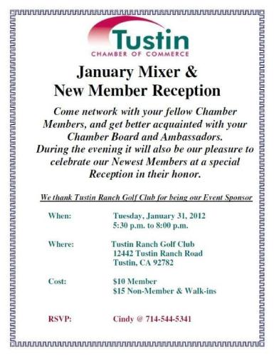 Tustin Chamber of Commerce invites you to come to our Mixer and New Member Welcome Reception.